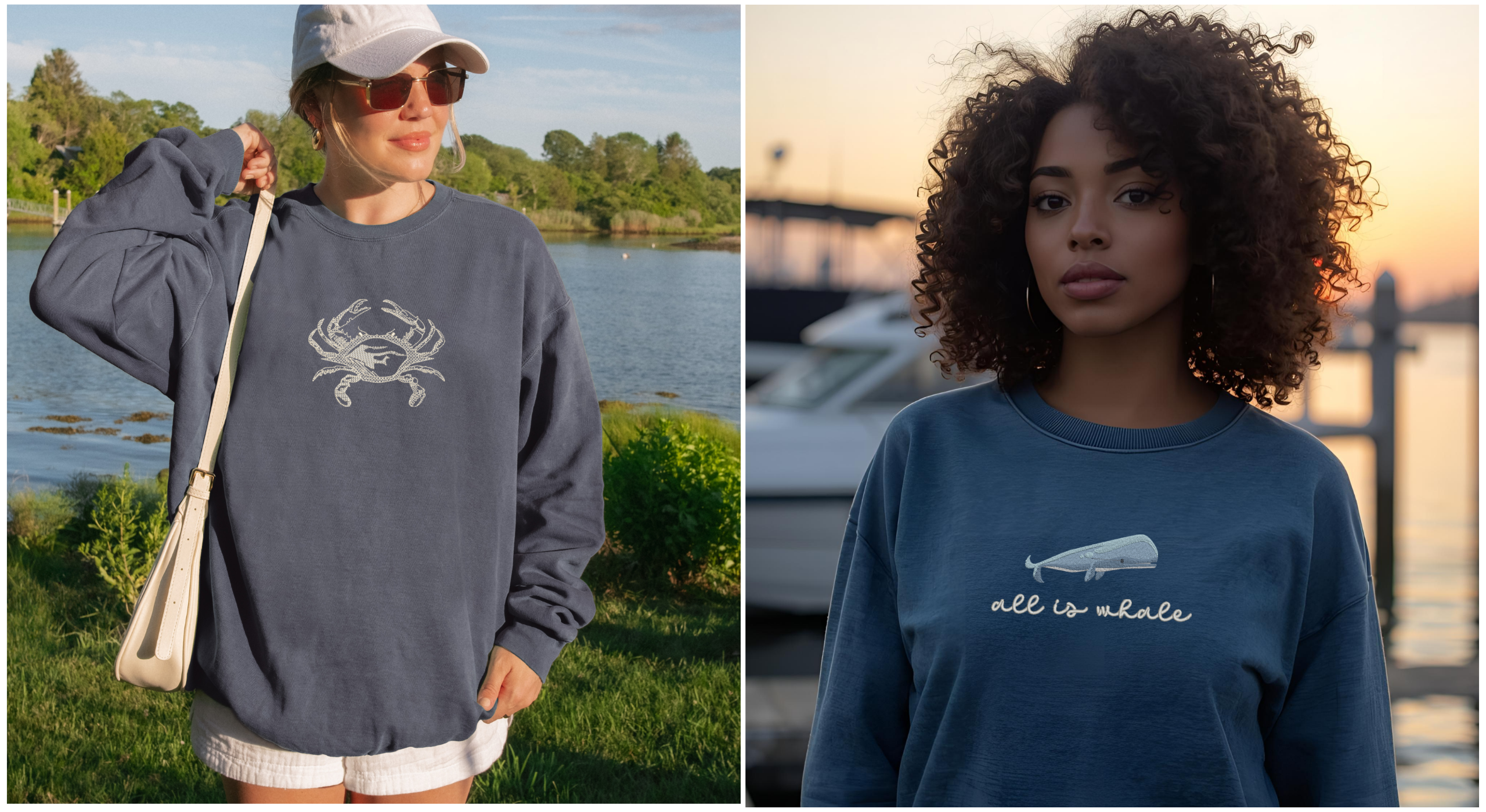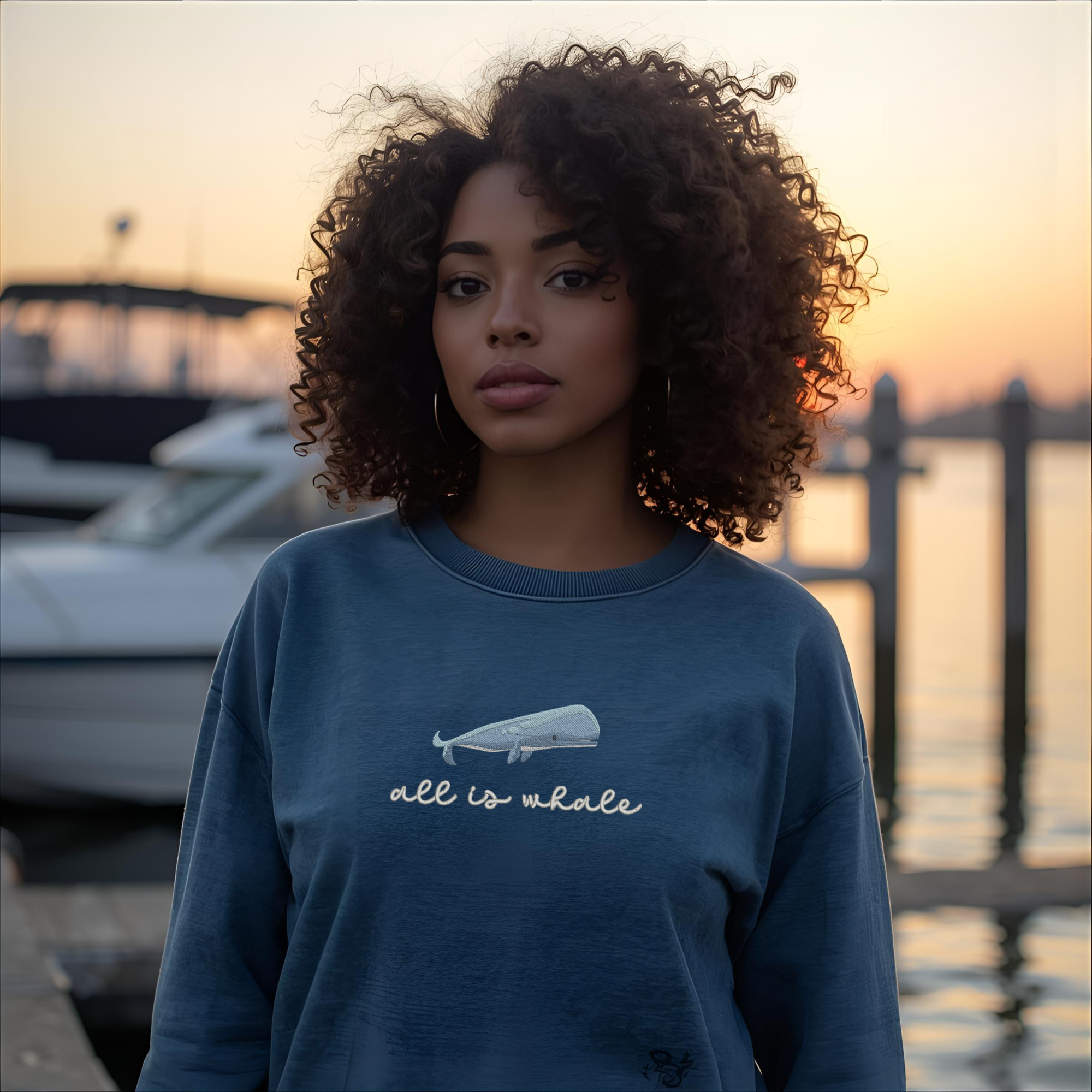 Embroidered Blue Whale Sweatshirt: Coastal Preppy Crewneck