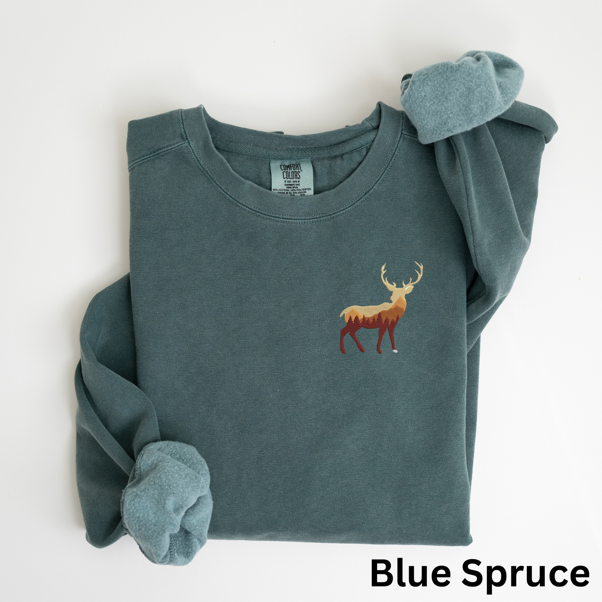 - Perfect gift for a hunting enthusiast or nature lover. Buck is machine embroidered on chest and available in over a dozen different sweatshirt colors. Sweatshirts are garment dyed giving the color a beautiful unique and vintage look.