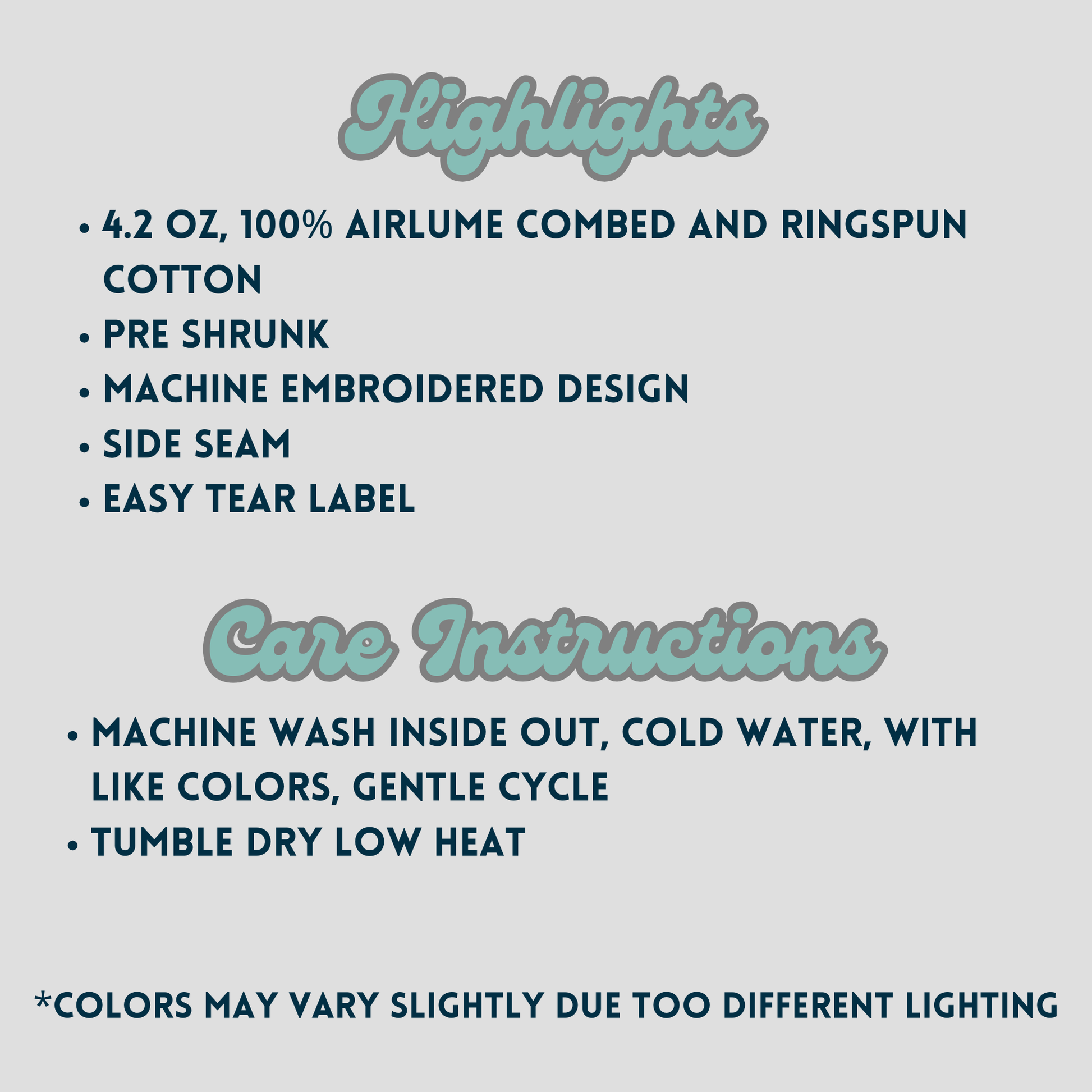 Dreaming of warmer months ahead? Perfect by itself or layered during those cooler months. Cherry design is machine embroidered. Tshirt available in 12 colors: white, black, deep gray, athletic gray, natural, heather dust, true royal, kelly green, light pink, light blue, heather peach, dusty blue and heather mint. Sizes available: XS, S, M, L, XL, 2XL, 3XL.