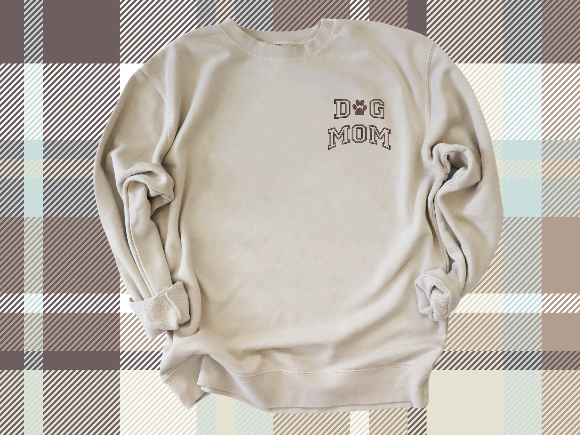 Embroidered Dog Mom Sweatshirt Pigment Dyed Crewneck Sweatshirt