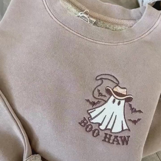 Embroidered Ghost Sweatshirt: Western Boo Haw Crewneck - Halloween Apparel