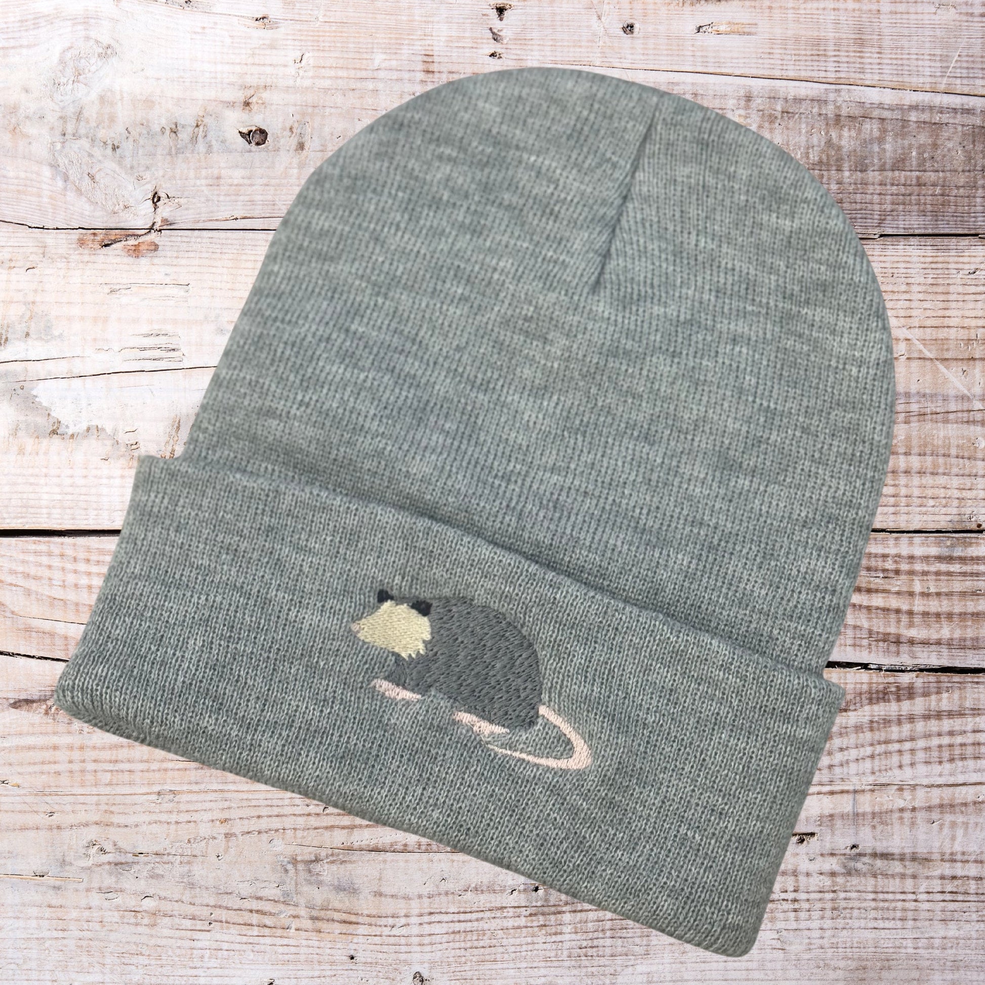 Embroidered Opossum Beanie: Knit Possum Lover Gift