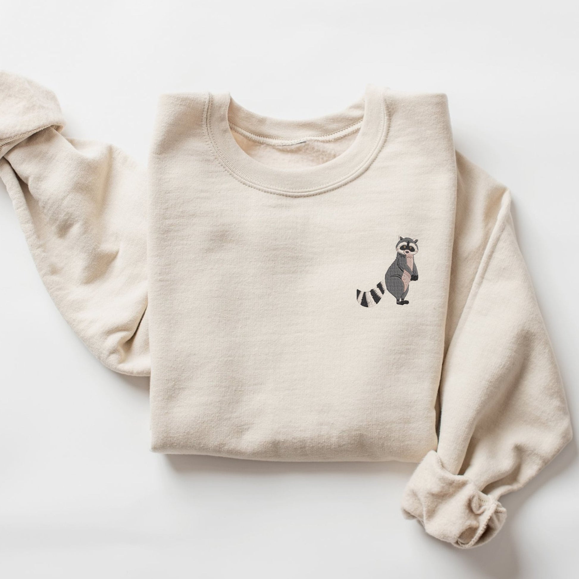 - Detailed Raccoon Embroidery: Our sweatshirt features a beautifully detailed raccoon embroidery that captures the essence of these adorable creatures.