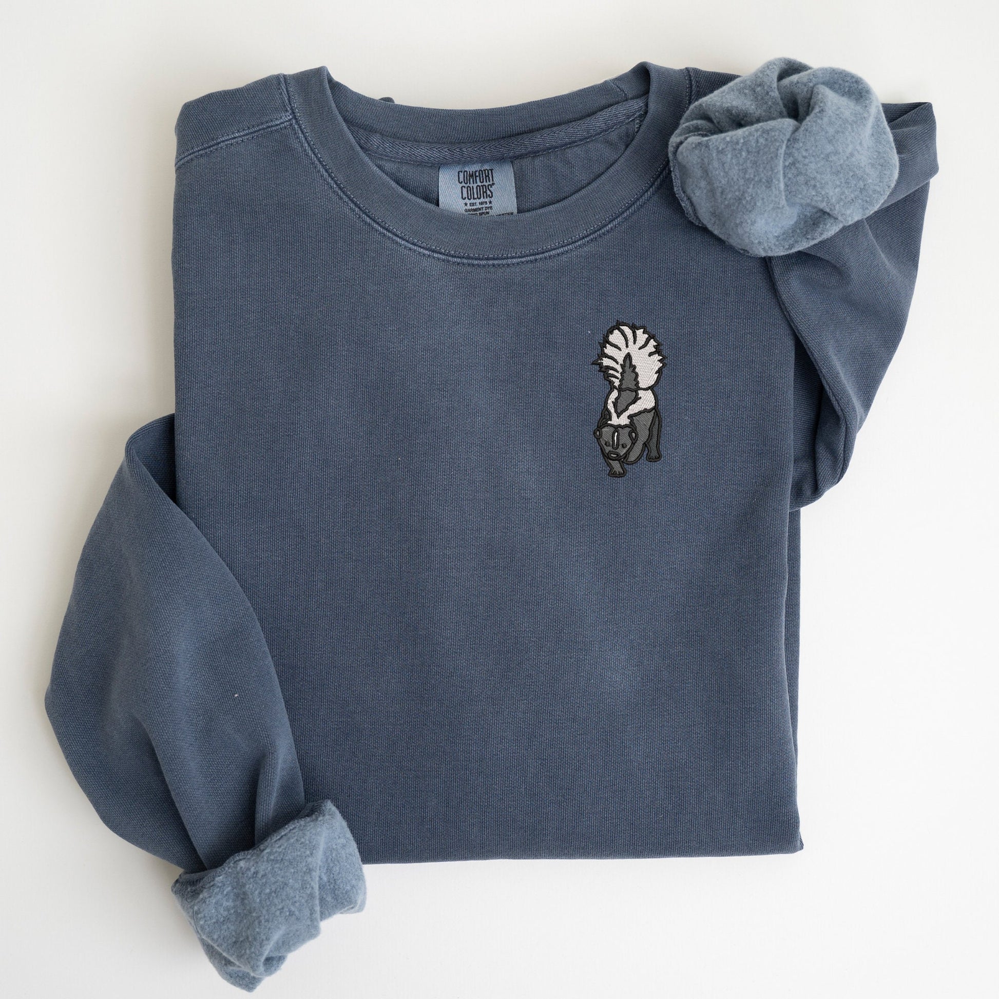 Unleash your inner charm with our Embroidered Skunk Crewneck Sweatshirt! This delightful piece seamlessly blends comfort and character, offering a unique addition to your wardrobe. Crafted with care, each stitch brings to life the adorable skunk design, adding a touch of whimsy to your everyday style.