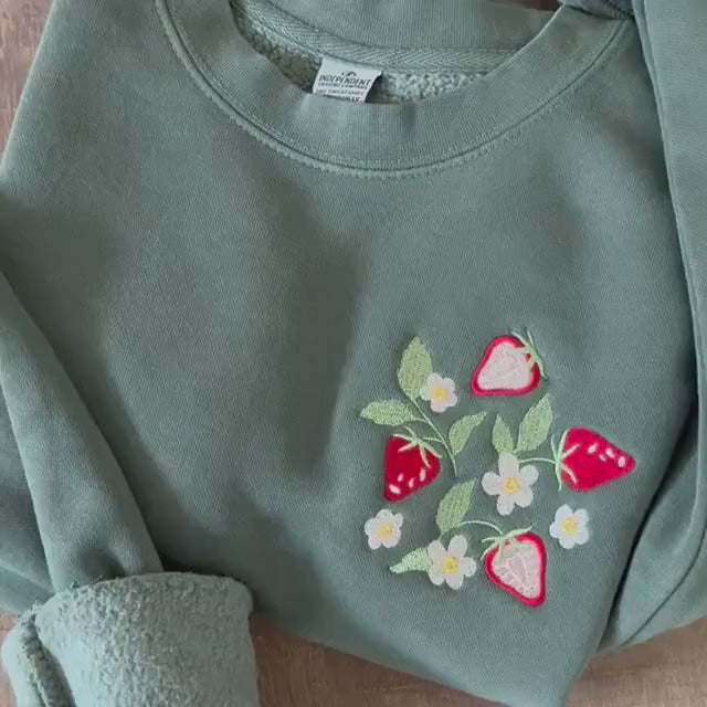Embroidered Strawberry Field Sweatshirt: Pigment Dyed Crewneck Pullover