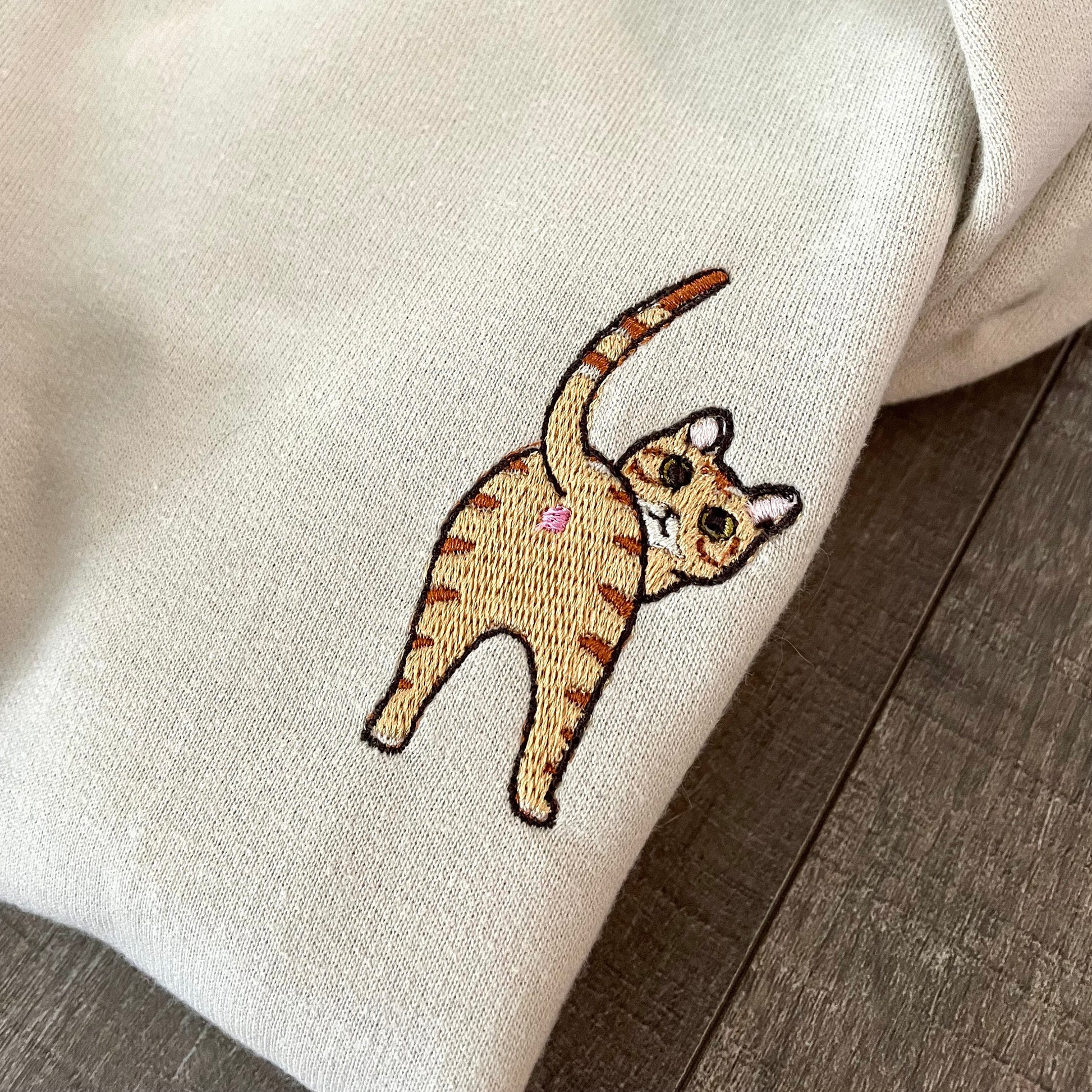 Funny Embroidered Ginger Cat Butt Sweatshirt - Orange Tabby Cat Lover Gift